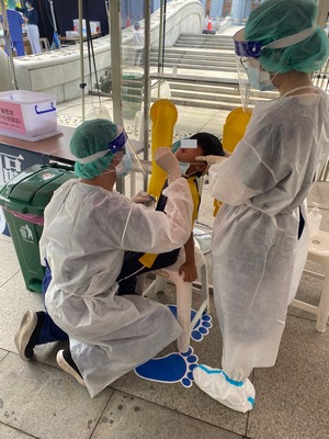兒童感染也是不少家長擔憂的部分,這次快篩站每天出動一位小兒科醫師,來幫忙孩子採檢外,只要父母、長輩帶著幼兒一起來採檢站,工作人員將會引導優先做篩檢,避免家長與孩子等待過久,也能降低未接種疫苗孩童的染疫風險。