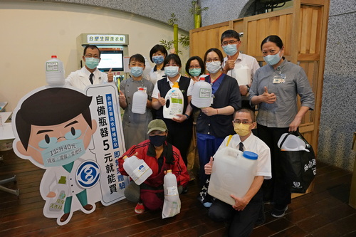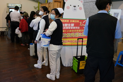圖說(中、右):環保又省錢,不少同仁聞訊前來排隊購買環保洗衣精。