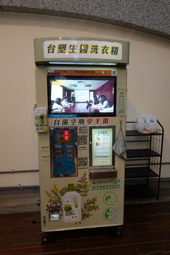 圖說(右):花蓮慈濟醫院總務室與慈濟大學食在永續消費合作社合作,5月27日導入環保洗衣精自動販賣機,進駐大愛樓打餐區。