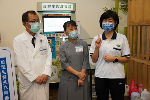 總務室主任沈芳吉表示,這次採用的是台塑生醫通過環保標章認證的「洗寶環保洗衣精」,生物分解度高於95%,不僅低汙染、無磷配方,可避免河川優氧化、降低環境傷害、且不含螢光劑、三氯沙、甲醛等有害人體物質,甚至可洗嬰幼兒衣物。