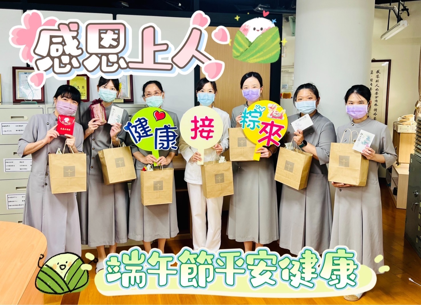 護理部鍾惠君主任表示,感恩 上人與精舍師父每個節日都惦記著同仁,今年收到 上人的七樣禮物,代表七覺支,其中 上人常提醒護理同仁要做「覺有情」菩薩,愛 上人所愛的所有人,現在更要延伸愛所有生命,在疫情還在高峰期間,希望同仁收到這份禮物,能把心安定下來,在端午佳節一樣堅守崗位,為守護全民健康向前行。