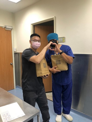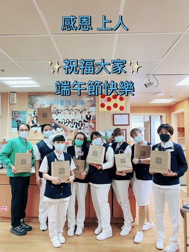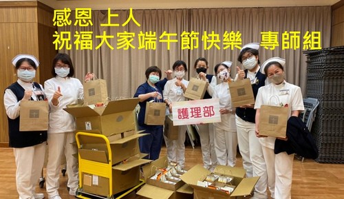 護理部合心八樓護理長余佳倫表示,很開心有靜思精舍與院方陪伴過端午節,尤其疫情以來精舍持續送來淨斯本草飲,有些同仁捨不得用都留給確診同仁服用,希望他們也能早日回來一起照顧病人,感恩 上人、精舍師父與院內主管,提供淨斯本草飲照顧同仁。