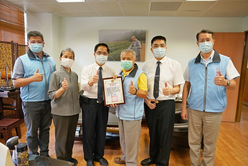 右圖: 花蓮榮民之家主任方矩等人十八日下午至花蓮慈濟醫院,致贈感謝狀給林欣榮院長,榮家輔導組組長林崇誠(右起)、花蓮慈院副院長羅慶徽、花蓮榮家主任方矩、花蓮慈院林欣榮院長、常住志工顏靜曦、榮家社工員林俊彥。
