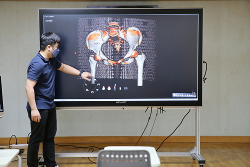 多點觸控平臺應用最新3D模擬技術輔助手術,讓醫師或醫學生在進大體模擬手術時不僅限於單次的練習,而是透過AR(Augmented Reality,擴增實境)與VR(Virtual Reality,虛擬實境)技術的重建能夠反覆學習,延展無語良師的長情大愛。花蓮慈院骨科團隊已在大體模擬手術中利用大體老師生前的資料,事前3D列印模擬骨盆,結合MR(Mixed Reality,混合實境)技術進行骨盆腔重建的模擬手術;對於臨床醫學,有了系統輔助,透過骨折重建模擬軟體及雲端傳遞功能,即能夠進行術前精密規劃後再進行複雜骨折手術,有效減少手術時間、患者的出血量,降低手術風險。(文、圖/鍾懷諠)