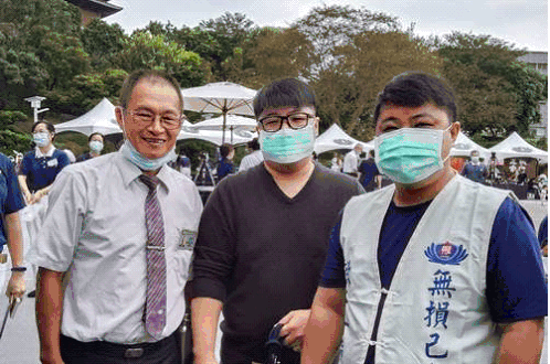 圖:慈濟志工莊雄行2020年陪伴王丁財(右一)、王人弘(中)兩兄弟前往高雄靜思堂參加相見歡。