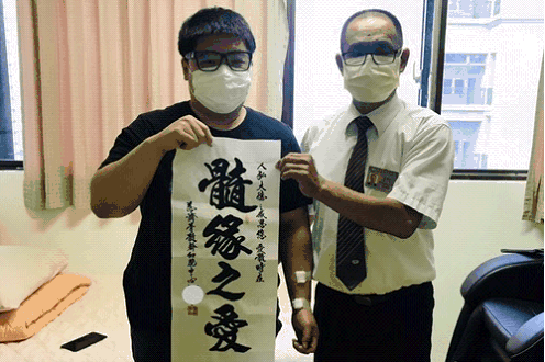事隔哥哥相見歡兩年後,人弘在今年(二0二二)四月被通知配對到,便展開一連串身體檢查及協調捐贈日期的流程,這一路上人弘總是很積極的配合,他笑說這些他早在哥哥丁財捐贈時,都已見習過,建檔時,志工也說明非常清楚,現在親自來捐贈,全家人的心情都非常平靜。