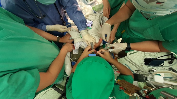 鄭醫師在分享中也提到,兒童外科彭主任與楊醫師的十年師徒情緣。她說,但早在二十年前,彭主任就已經為了這罕見需要開胸的手術,建立好團隊,包括手術器械、流程,年輕醫師楊筱惠接手後,兒童外科團隊又更精實了。