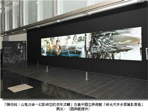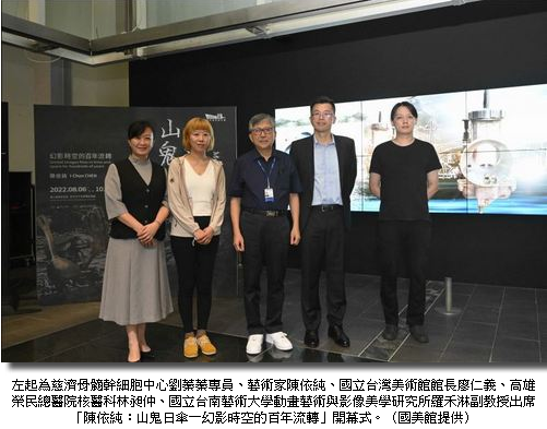 國立台灣美術館(以下稱國美館),八月六日起至十月二日在「時光天井多屏幕影像區」展出「陳依純:山鬼日傘-幻影時空的百年流轉」影片展,此為今年國美館第三檔跨域創作案徵件獲選作品,在國美館時光天井舉辦的開幕式的這天,由國美館長廖仁義親自主持,除邀請藝術家陳依純到場導覽,更特別邀請在創作過程中,給予藝術家多方協助的高雄榮總核醫科林昶仲醫師,多位藝術家亦出席開展。