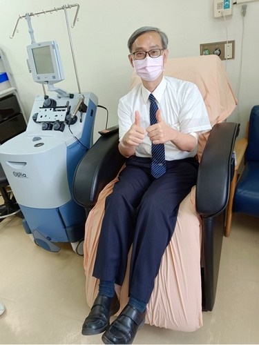 李啟誠主任分享個人的儲存經驗,在免疫及幹細胞中心成立前的流程測試,五十七歲的他先進行初步健檢,確定血液功能與免疫功能還不錯後,便參加收集免疫幹細胞流程測試,經由非常精密的分離機收集免疫細胞與幹細胞,整個流程收集時間約三到四個小時後,尚青ㄟ(很新鮮)免疫幹細胞就被冰凍珍存下來了。