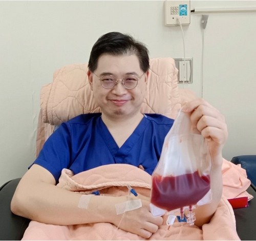 圖(右):經過3-4小時大功告成、李啟誠主任秀出剛收集到的尚青ㄟ免疫及幹細胞。 (李啟誠提供)