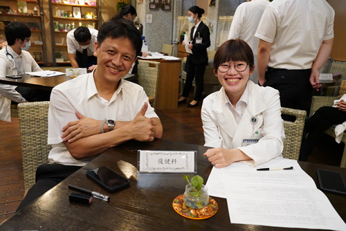 圖(左):復健醫學部副主任洪裕洲(左)與PGY許湘郁互動融洽。