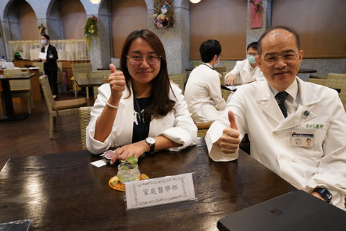 圖(右):小兒腎臟科主任陳明群醫師(右)熱情接待PGY。