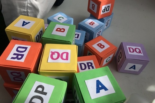 其中彈珠臺、骰子配配看,屬於初階配對的遊戲;彩色球池則是屬於中階配對,遊戲規限時十秒內,讓民眾在球池裡面撈出與自己同色的球,體驗在茫茫人海中找出與自己基因相近的HLA 初配後,再從找出的球堆裡,找出與自己基因代碼相同的球,這遊戲相當於HLA血樣複檢結果。