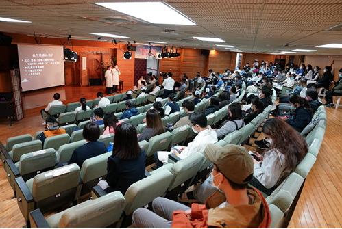 圖:急診部胡勝川教授志工早會分享時,座無虛席。(陳炳宏攝)