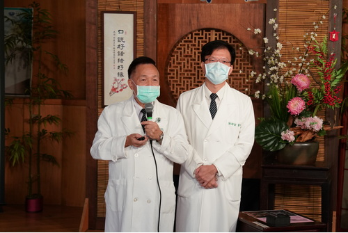 左圖:急診部主任陳坤詮推崇恩師胡勝川教授(左)在臺灣急診醫學上的貢獻。(陳炳宏攝)