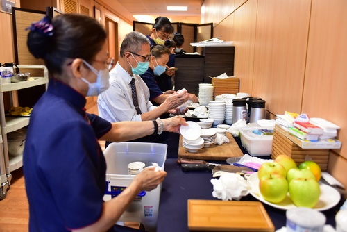 圖:花蓮慈院重要活動志工絕對不缺席,印尼慈濟醫院來花蓮慈院觀摩研習,他們也在幕後準備水果點心。(薛崑城攝