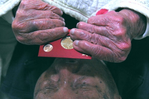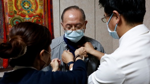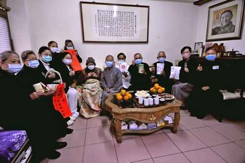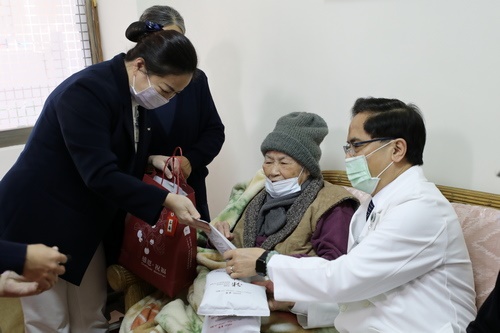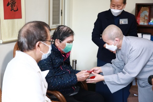 歲末寒冬,正是送暖、相互祝福的好時節,更是花蓮慈濟醫院行之有年的美好傳統。德安師父與林欣榮院長、護理部主任鍾惠君、呂宜晏護理師,第一站就來探望九十七歲的馮條財師兄與九十五歲的李里師姊。健朗的李里師姊聽說師父和院長來了,早早就站在家門前迎接;李里師姊雖已是九旬高齡,心裡卻覺得自己仍是四十多歲的「年輕人」,疫情前每天都會到花蓮慈院做志工,與醫院同仁們相當熟悉,由於見到大家太開心了,血壓量出來有些偏高,院長叮嚀師姊平常要多注意日常的血壓變化。馮條財師兄因服用藥物的關係,起床時間較晚,德安師父和院長也特別前往臥室探望他,並送上福慧紅包;馮師兄一拿到福慧紅包,馬上將紅包舉高頂禮,以表達對上人無比的敬重。