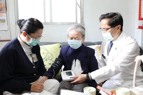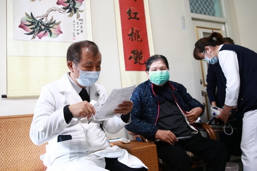 踏進家中話家常,聚在小小的客廳裡,大家談古說今,並送上結緣品和祝福;同時醫護同仁也發揮良能,替老菩薩們量血壓,看看身體狀況。關懷法親隊伍中,由德旭師父與徐中平副院長、護理部王琬詳副主任、宋美惠護理師,一行人來到了陳輝南師兄的家中。 陳輝南師兄長期投入環保站服務,近來因頸椎和攝護腺問題在三年內多次動手術,暫時沒辦法去做志工。雖然師兄血壓量測結果正常,精神也很不錯,但心細的徐中平副院長看到陳師兄家中有許多從不同醫院拿回來的藥包,檢視發現有些重複了,於是特別叮嚀師兄要到花蓮慈院「高齡整合照護科門診」就醫,務必請醫師協助整合用藥、調整服藥習慣,以達到減藥的效果;擔心師兄忘記,還寫一張字條提醒他,徐副院長強調:「只要掛這一科就好了,要記得來喔!」