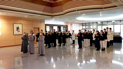 念茲在茲,法親關懷之行的尾聲,精舍師父、院長以及花蓮慈院同仁們也來到了住院中的張芙美校長病房探望;張芙美曾任慈濟護專第二任校長、慈濟技術學院首任校長,更培育出無數優秀的有傑出校友,如今這些學生不僅在花蓮慈院,也在全台護理領域發光發熱,奉獻為病人。在慈濟法親虔誠一念的祝福中,張芙美校長於隔日上午六時安詳辭世,圓滿一生。