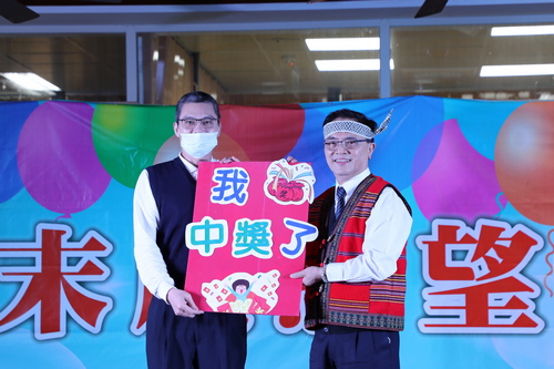 圖說:林欣榮院長為現場同仁準備了彩蛋禮「花慈好棒棒」,每一位同仁在院長心中都「好棒棒!」