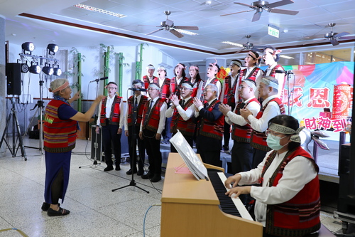 圖說:望年會現場熱鬧,有氧舞蹈社的動感演出(左圖)、花蓮慈院合唱團熱情開唱(中圖)。
