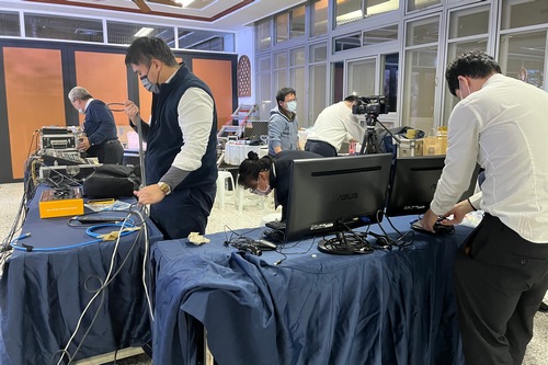 因為新冠肺炎疫情影響,花蓮慈院為遵守防疫規定,已有兩年停辦歲末感恩望年會,並改為公開電腦抽選,如今疫情較趨緩,在今年終於要舉辦久違的實體望年會。人力資源室主任劉曉諭表示,最初的場地選在戶外的同心圓地球廣場,是因為活動當天是農曆十五 ,希望能有皎潔的月光相伴,帶給全院幸福滿滿的晚會活動,想不到活動消息一公布,就有近兩千位同仁報名參加,但考量場地大小、安全與活動效果等因素,經籌備小組謹慎討論後,將望年會改為現場及線上連線兩種參與方式,現場參與同仁超過八百人熱鬧團聚,線上也有超過千人報名同樂,大家很久沒有這樣的相聚了,所以看到同仁踴躍的參與,讓幕後團隊都覺得很感動。