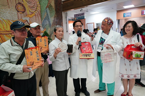 ▲看到逢年過節都會致贈宜蘭餅給花蓮慈院的宜蘭餅董事長劉鐙徽師兄,林院長也大方購買熱銷產品。