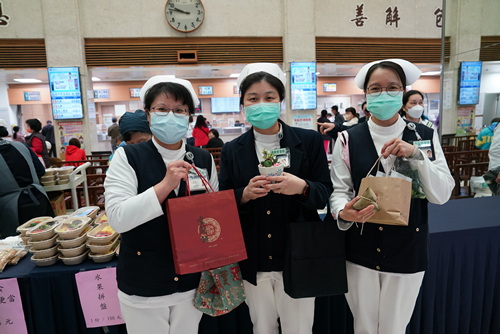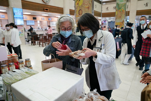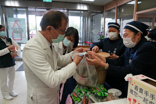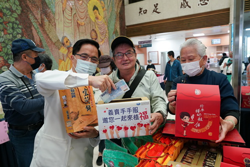 參與義買的癌症醫學中心個案管理師謝樹蘭、蘇慧如、林英惠等人說,醫院每年都花很多經費幫助弱勢癌友,公益市集不僅買到美食,還能做善事一舉數得。陪骨髓捐贈者回醫院追蹤的關懷志工林櫻敏表示,在社區群組看到手手福活動訊息,也趕來大廳選購,她說,醫院每年都幫助很多經濟困難病友的醫療費用,能助人救人是很幸福的事。