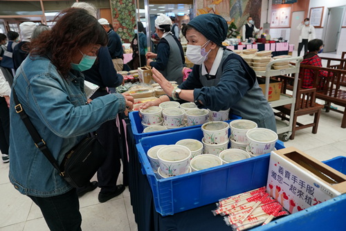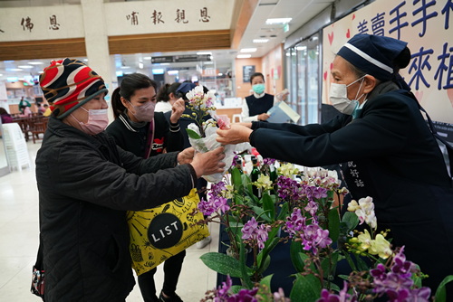 一位正準備住院的病人,買了一盆蘭花,希望能好心情平安度過手術。買了餅乾、素粽和餛飩的陪先生到醫院拿藥的鍾小姐說,做善事不能少一人。