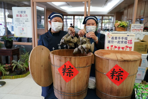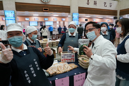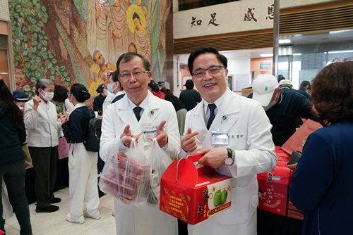 ▲林欣榮院長(右)與吳彬安副院長,用行動支持「手手福義賣」。