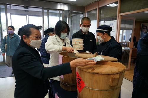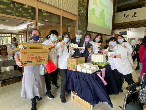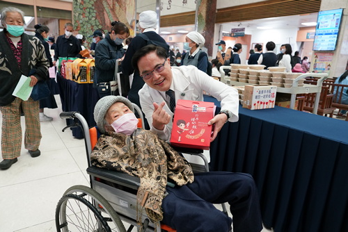 ▲林欣榮院長看到王志鴻副院長母親,也大方購買宜蘭餅贈送。