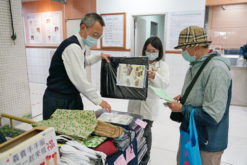 社工師卓依蒨還沒八點就到大廳,她也是荷包滿滿準備大採購,很感恩顏師姊為社服室籌募慈善基金。由日本料理師傅轉為精舍大寮廚師的慈濟委員林碧嬌師姊,到醫院看病就看到義賣,她說當初花蓮慈院剛開幕,她就在幫忙五年,「現在85歲已經沒辦法動,只能義買贊助」。