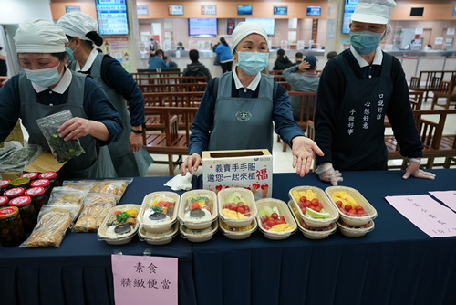 ▲除素粽、油飯,現場還有花蓮志工準備的素食便當與水果盒。
