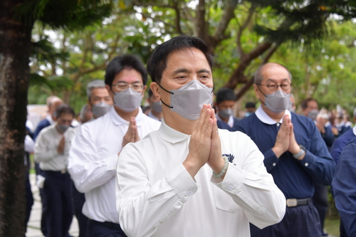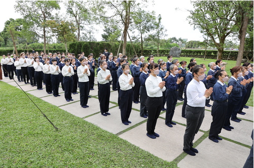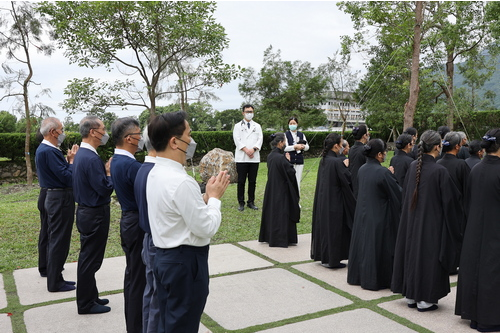 「感恩醫院的所有同仁,一條心『跟師父走!』把鄉親健康都守護好。」林欣榮院長表示,藉著朝山將自己的心沉澱下來,去除無明雜念,虔誠祈福,一求 證嚴上人法輪常轉,二求花蓮慈院醫療團隊在照護病人與家屬時,能堅守崗位守護生命,守護健康,守護愛。
