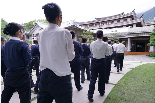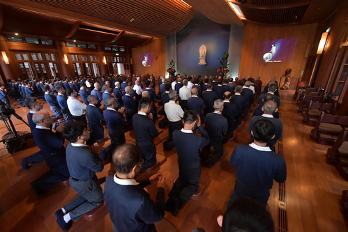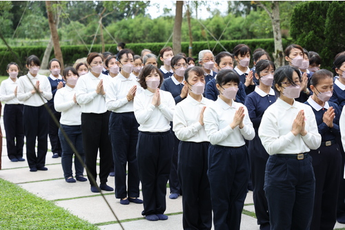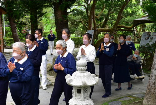 佛號聲中,花蓮慈院與慈濟醫療法人同仁身著白色上衣在莊嚴隊伍中由靜思精舍師父的引領下,步步踏實,堅定心念來朝山。這次花蓮慈院同仁在院長林欣榮、副院長何宗融、陳星助的號召下,與慈濟醫療法人一共超過四十位同仁把握因緣殊勝參與這場盛會。