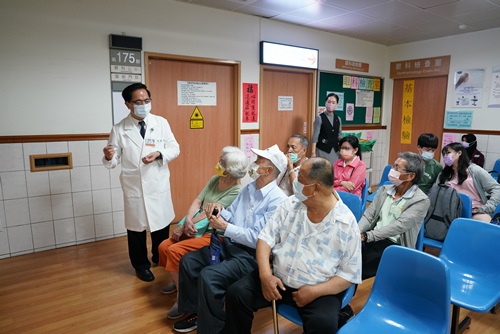 ▲林院長(中)親切的與熟識病人問好。(陳炳宏攝)