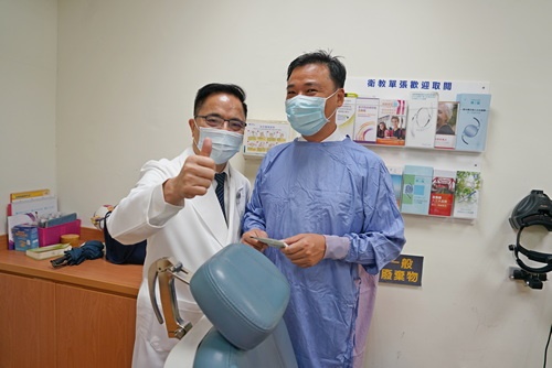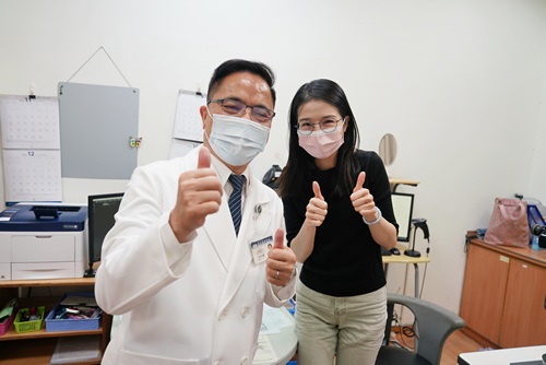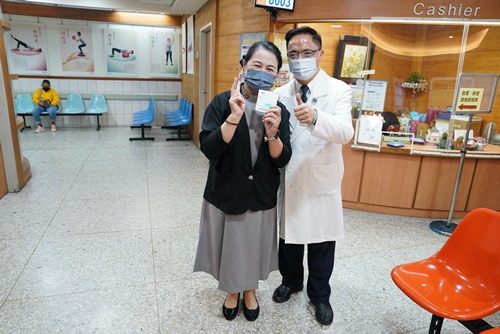 左圖:林院長(右)祝福張家榕醫師看診順利。