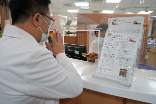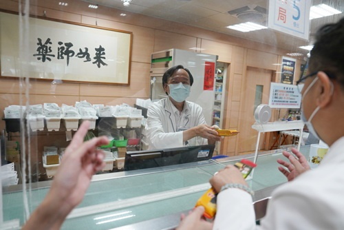 左圖:林院長(左)祝福中醫藥局藥師颱風天上班愉快。