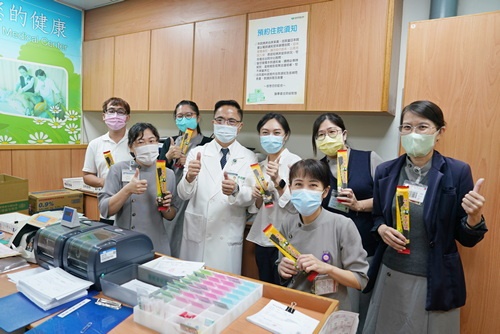 圖: 4日上午九點不到,院長室準備小包裝的日日果仁,由林欣榮院長逐一送到診間,感恩醫護同仁,也問候病人,叮嚀同仁及病人,雨天交通要小心。