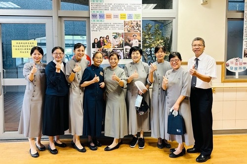 中圖:長期照護部主任林宜靜(右四)分享客製化中高齡同仁的健康照顧與獨步全臺的臨床技能訓練。