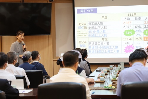 「除了工作分享、人才培育、互為導師、能力互補來強化中高齡合作之外,我們加入了慈濟特色,同仁一起合心協力,就如五『型』相生,一起共融共好。」由人資室兼職安室主任劉曉諭,分享花蓮慈院推動促進中高齡者、高齡者就業以及世代合作的特色亮點與經驗,並介紹院內推動的各項措施。