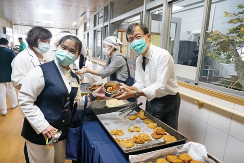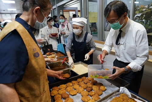 在醫療法人資訊室服務的王廷俊說,在慈院每天可以吃各種素食,還有加菜,都是員工的福利,當然很幸福。中醫病房護理長張素雯表示,很開心吃到不一樣的點心,感覺是讓身體更有體力的小確幸,額外的加菜點心,讓上班更快樂。(文、圖:陳炳宏)