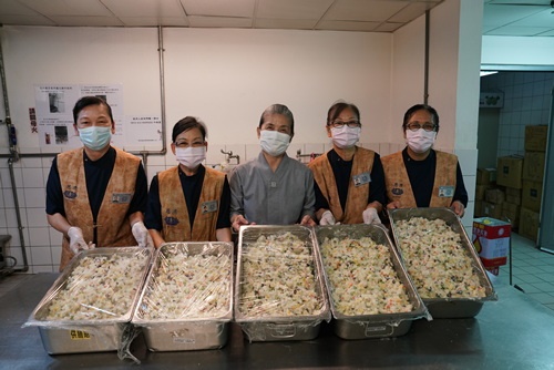 ▲由於逢臺北志工當勤,除支援各病房外,不少志工被徵調支援「健康花慈、幸福久久」香積勤務。