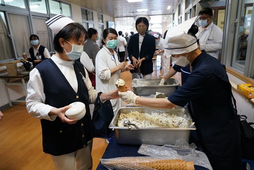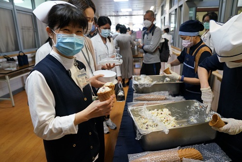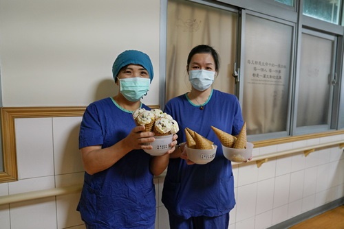 ▲午間仍有許多護理師當班,由代表出來取幸福甜筒。