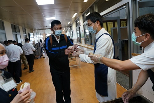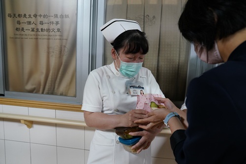 圖:醫務部行政股長古記嚴對行政同仁、護理長一視同仁,都極小心翼翼交付,深怕一個不小心,Pita就落了地,辜負了團隊的愛心。