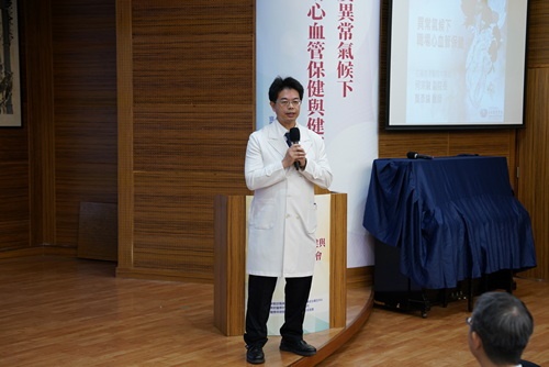 中醫師龔彥綸主要分享異常氣候下職場心血管保健經絡疏通相關穴道,他說,心在中醫,就是陽中之陽,在乎的是溫度,保暖很重要。