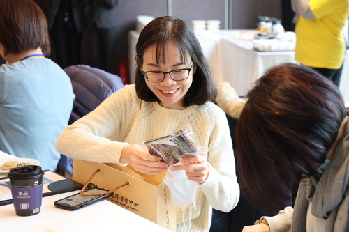 圖說:花蓮慈院團隊用心準備結緣品,除了在地部落手工錢包、點心等,還特別送上淨斯本草飲濃縮液,讓與會者很驚喜。