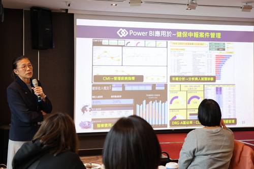 其中,在林玲珠主任分享到Power BI應用於醫事人力、機構業務及病床運用管理時,引起與會者的熱烈討論,對於人才資料庫的預警人力缺編很有興趣並紛紛提問,希望能學習與借鑑並導入回自家醫院。林玲珠主任說,期待未來Power BI能全面化,應用於醫事管理面,並運用數據分析預測未來趨勢,同時也鼓勵大家一起來做Power BI,希望日後能與其他醫院一起合作。