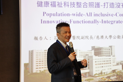 圖說:副院長陳星助介紹「邁向無圍牆的健康照護模式」,分享運用先進的資通訊力量打造無圍牆醫院,提升就醫可近性