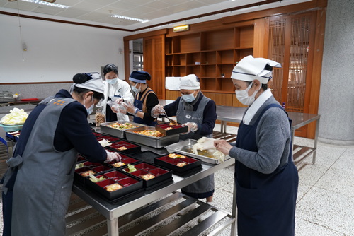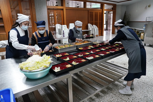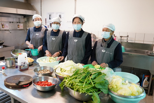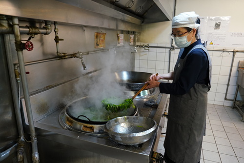 來自彰化的師姊黃秀緞在慈濟承擔香積志工已超過30年,這次配合營養師,儘管不熟悉料理步驟,但經過充分的協調溝通,小組即可合和互協完成料理。這次參與料理的志工還有宋畏、陳麗美、黃女娟等三位師姊。